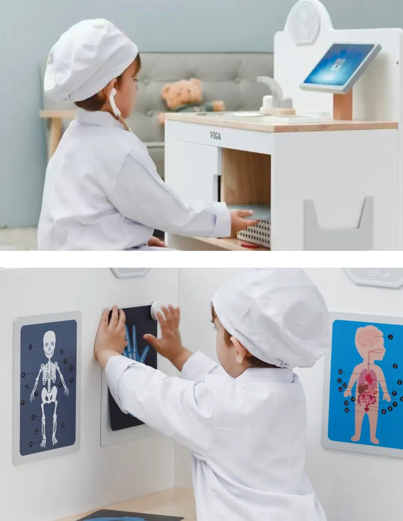 Through realistic medical equipment and warm scene design, it transforms children's unfamiliarity with hospitals into a controllable role-play experience. It helps them understand medical procedures, ease anxiety, and learn to care for others and express themselves through role-play.